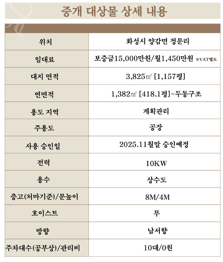 대지 3,824.7934㎡ 1,157평 / 건축 1,382.1488㎡ 418평 / 연 1,382.1488㎡ 418평 평