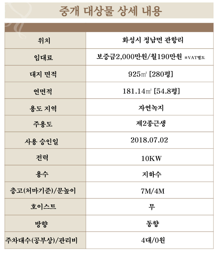 대지 925㎡ 280평 / 건축 184.14㎡ 56평 / 연 184.14㎡ 56평 평