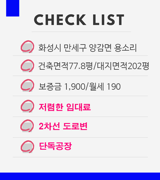소형 공장 임대 60평이하,300평 이하 중형,단독마당 공장